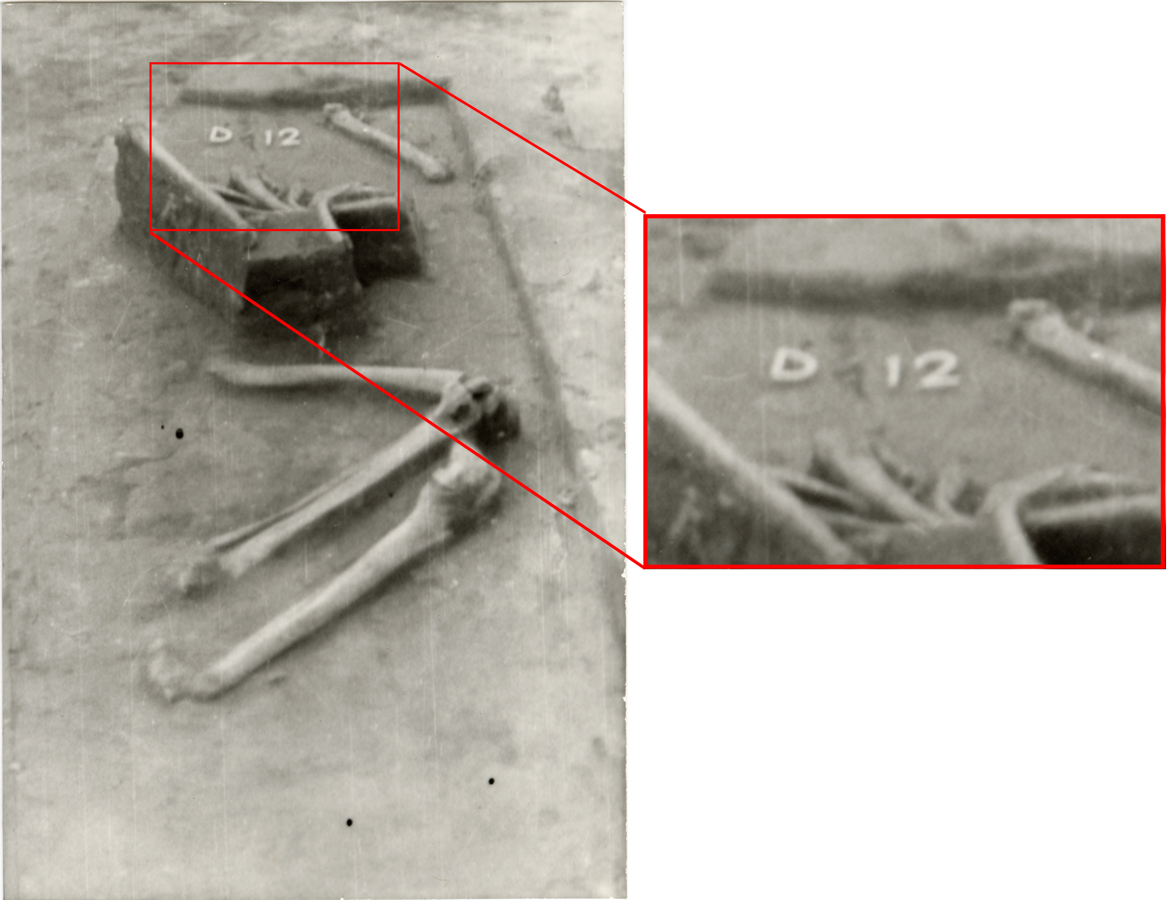 4. kép: A D12 azonosító számmal ellátott sírfotó és kinagyított részlete