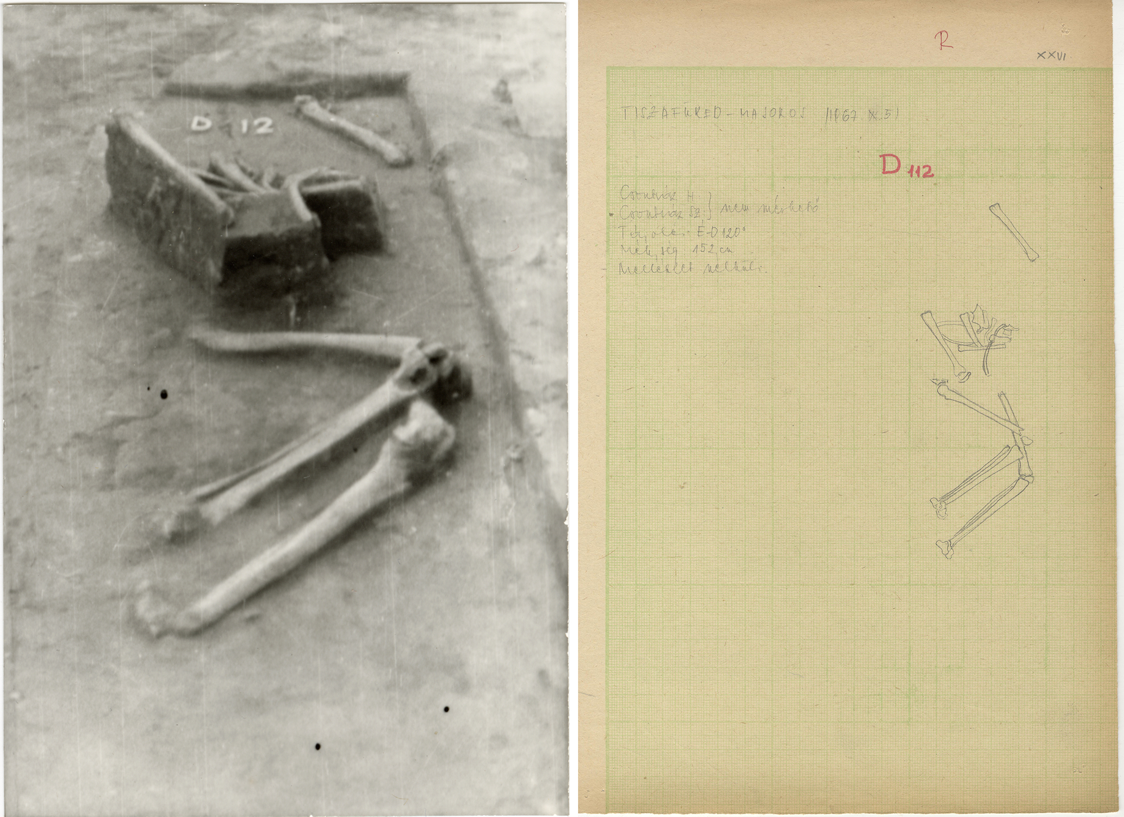 5. kép: A D112. sír egymásnak megfelelő sírrajza és sírfotója